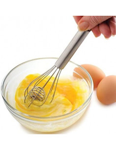 Mini batidor con núcleo interno. El arma secreta para huevos y mezclas muy esponjosas. Ideal para airear claras y crema batida rápidamente.,Mide 18.5 x 5 x 5 cm.,Durabilidad, flexibilidad y diseño para su cocina. Patentado.