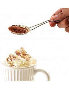 Cucharita espolvoreadora de acero inoxidable. Perfecta para espolvorear canela, cacao o nuez moscada encima de bebidas calientes y frías. También ideal para espolvorear azúcar glass encima de donas y pastelillos recién hechos. Mango curvo fácil de sujetar.,Mide 18.5 x 5 x 5 cm.