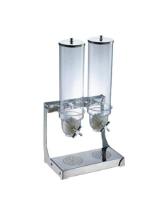 Fabricado en acero inoxidable y cilindros de polipropileno transparente,capacidad del cilindro de 2 x 4 litros.,Llave de dosificadora de cereal.,Medidas:33.5 x 24 x 65 cm.,Peso:10 Kg.