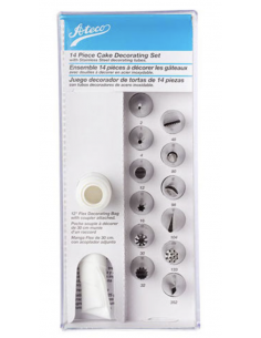 Set para decoración de repostería de 14 piezas. Incluye una manga pastelera flex de 12″ (30.5 cm), 12 de las duyas más populares de Ateco, un coupler y un recetario. Viene con una caja de plástico transparente perfecta para almacenar los utensilios de manera segura e higiénica.,Use este set de 2 duyas para preparar y decorar pasteles, cupcakes, pays y muchos más.